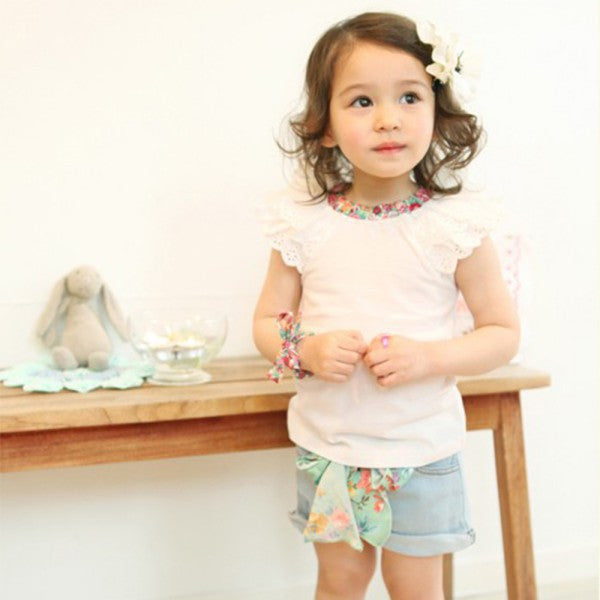 0-2Y Kids Baby Girls Clothing Floral Collar T-shirts Cute Short Sleeve Tops Blouses Shirts PY TIML66