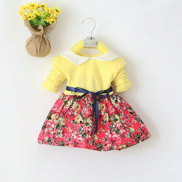 1-5Y Kids Baby Girls Princess Long Sleeve Pleat Floral Bow Mini Dress Party Tutu Dresses TIML66