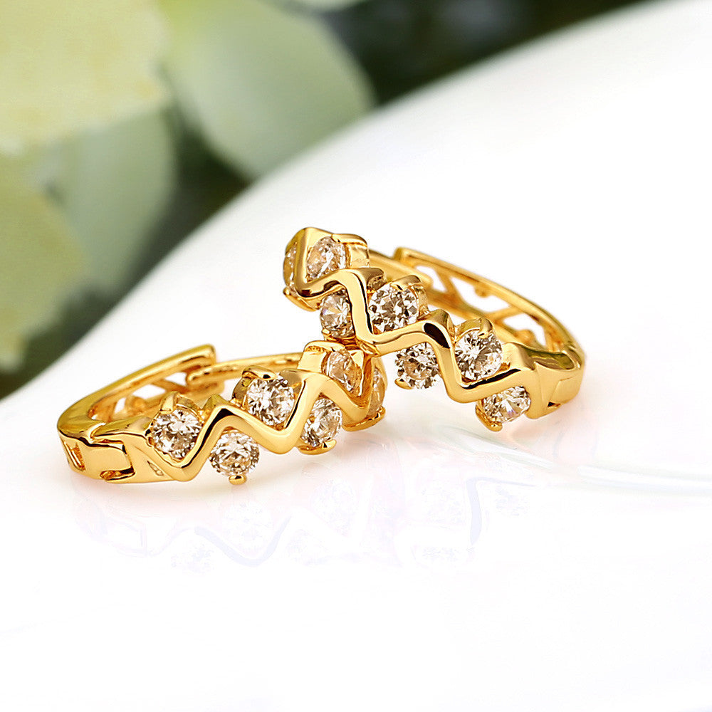 1pair trendy 18k gold plated hoop earrings women gift jewelry crystal rhinestone hollow wave ear stud for girl lady TIML66