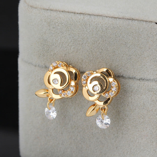 1paircrystal zircon earring 18k gold plated flower earring women earings stud earring jewelry TIML66