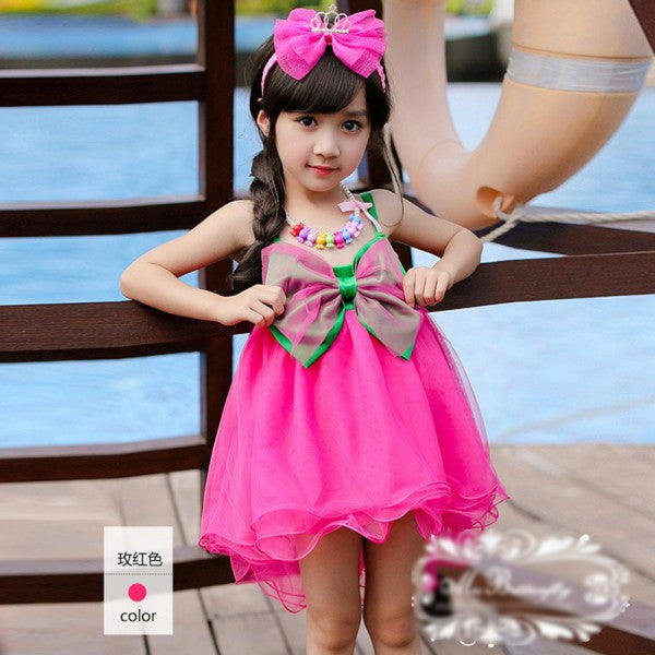 2-7Y Baby Girl Kids Big Bow Princess Dresses Suspender Tulle Holiday Party Tutu Dress TIML66