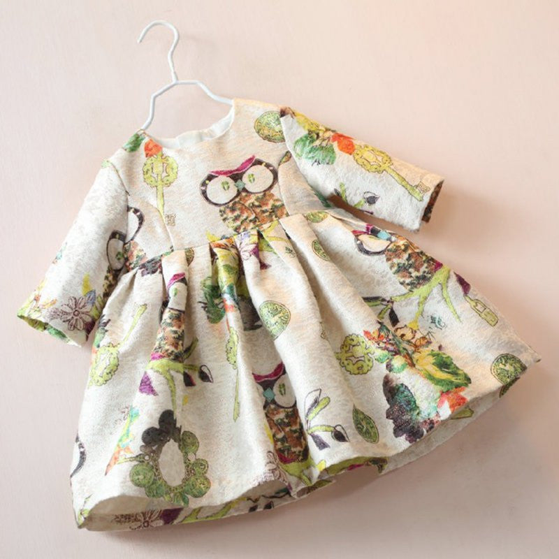 2 years infant baby girls dress half sleeve owl pattern high waist dresses TIML66