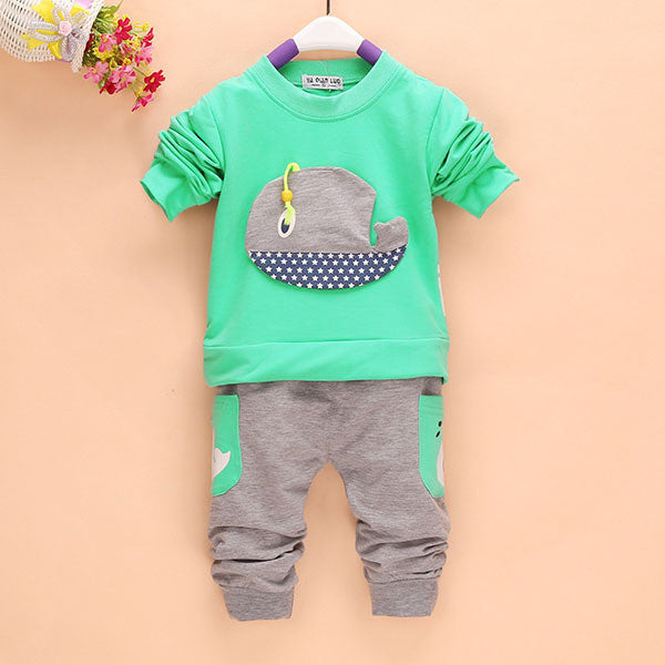 2pcss Outfits 1-4Years Kids Baby Boys Clothes Long Sleeve Whale Tops+Long Pants Clothing Sets 4 Colors TIML66