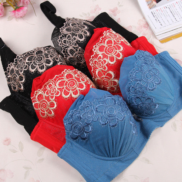 3/4 Coverage Bra Plunge Push Up Bra Lace Embroidered 80 85 90 95 C Cup PY1 TIML66