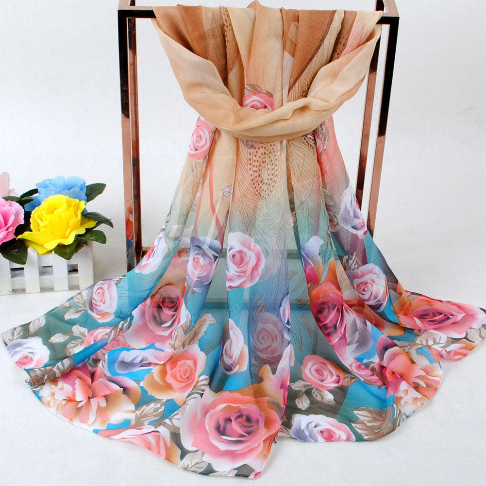 able Flower Printed Women Bohemian Chiffon Scarf Boho Long Shawl Beach Pashmina Elegant Thin Scarf Pareo Beach TIML66 TIML66