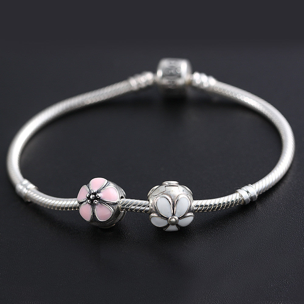 romacci diy bead beautiful daisy enameled clip bead women jewelry5 sterling silver for 3mm european charm bracelet TIML66