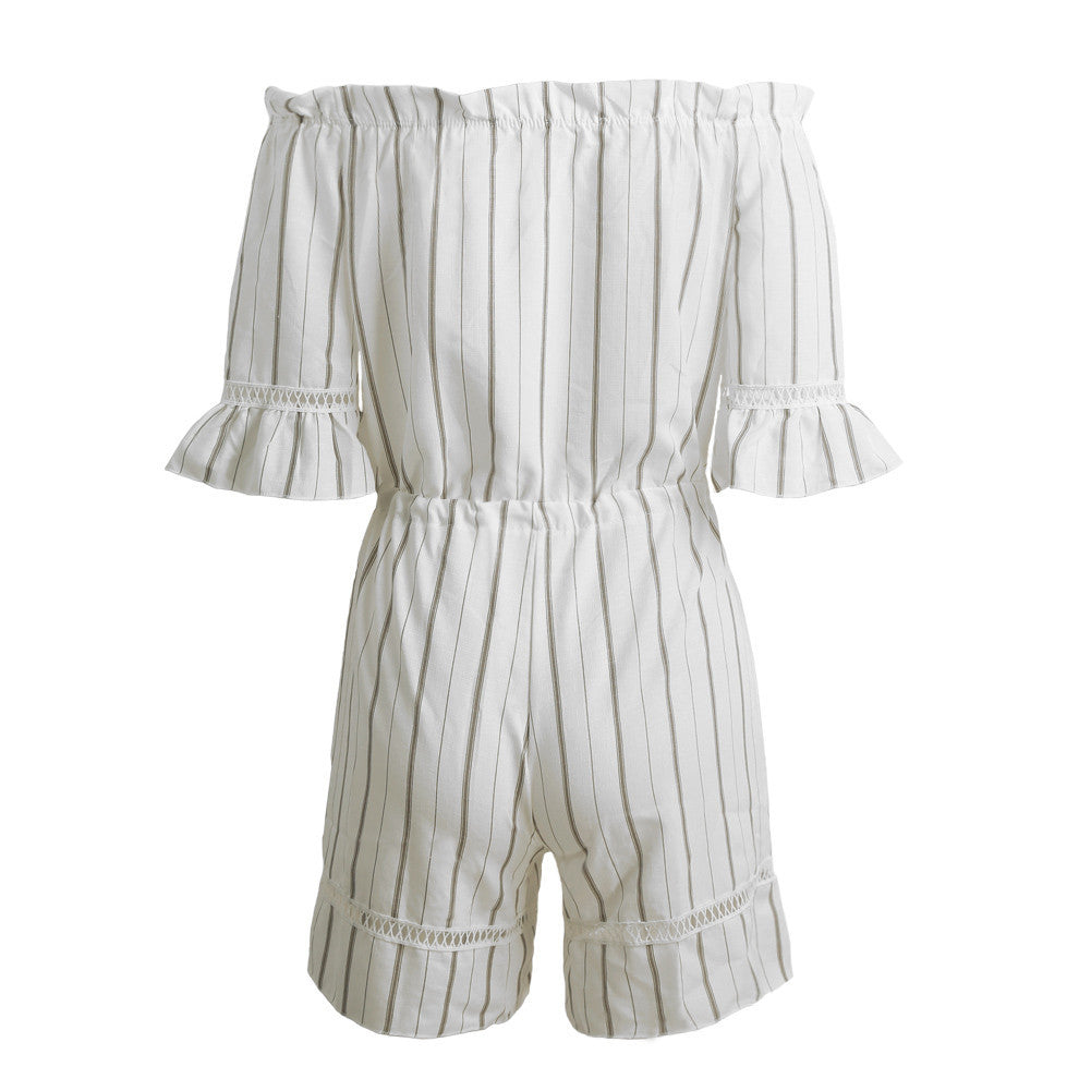 rompers women jumpsuits striped off shoulder tassel fringe short playsuit casual beachwear overalls white TIML66