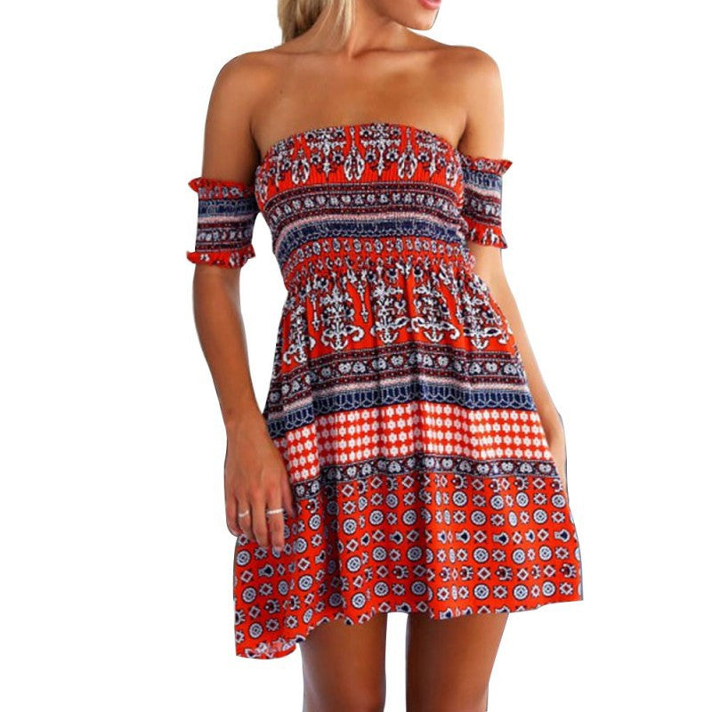 Sexy Straplesini Dress Off-Shoulder Beach Club Print Party BallJFY66