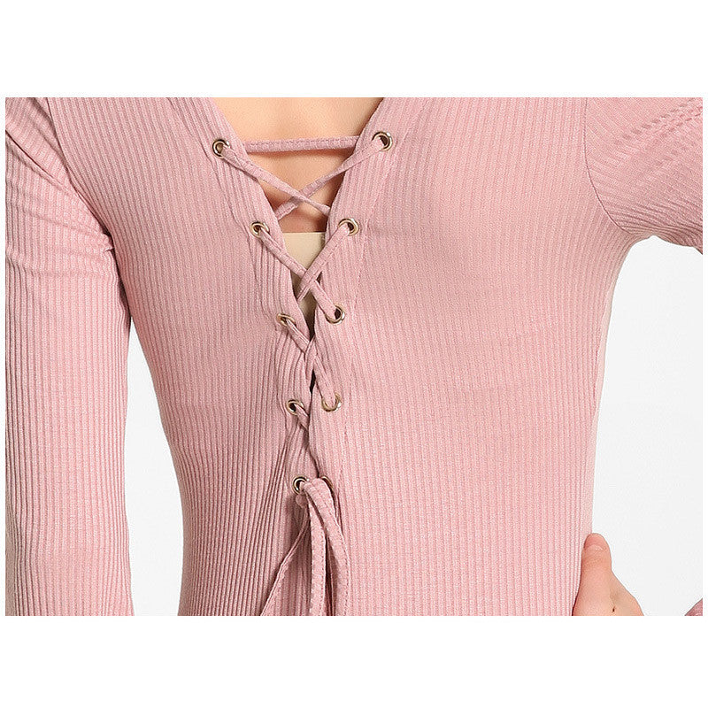 sexy ukraine women knitted dress solid cross strap long flare sleeve dress split slim bodycon ribbed warm dress knitwear TIML66
