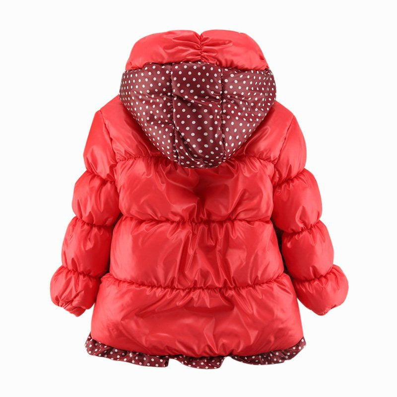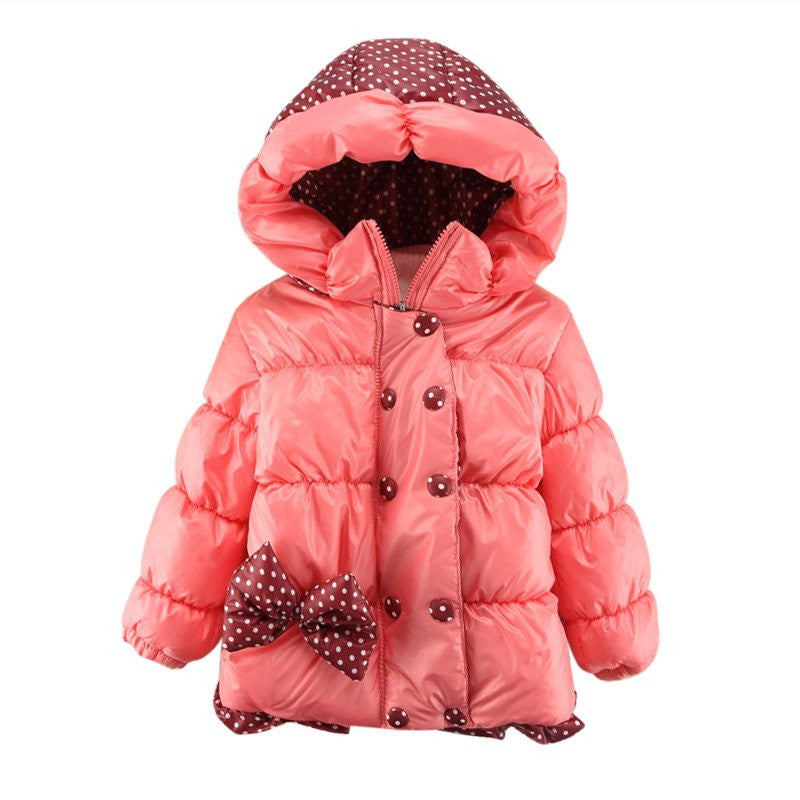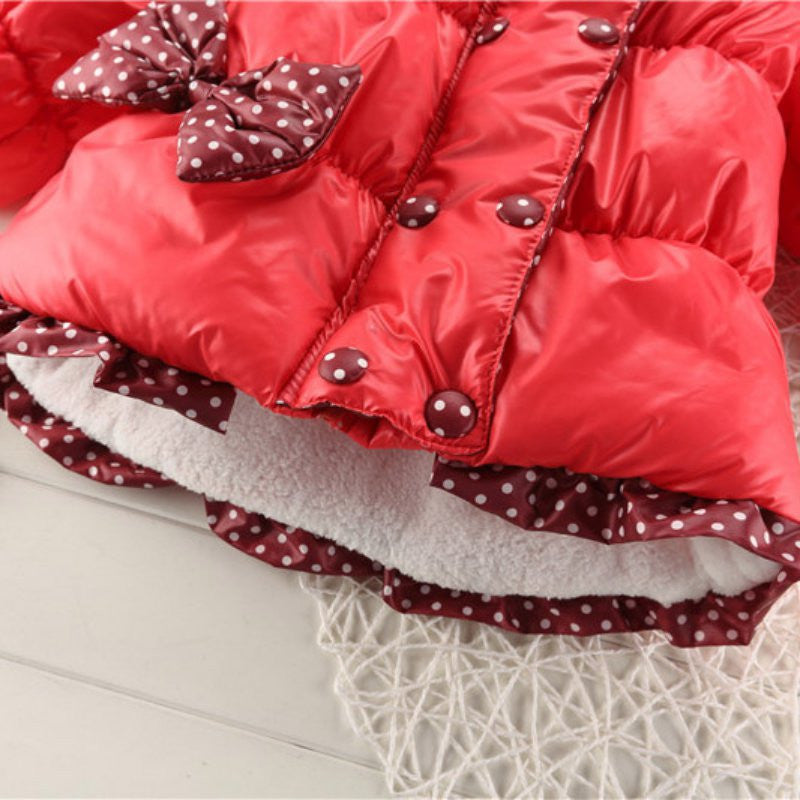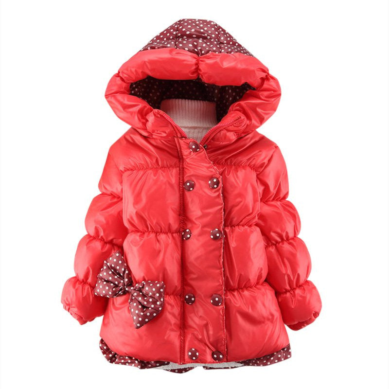 Super Warm Baby Girl Down Coat Bebe Hooded Jacket Bowknot Long Sleeve Jackets Kids Polka Dot Outwear TIML66