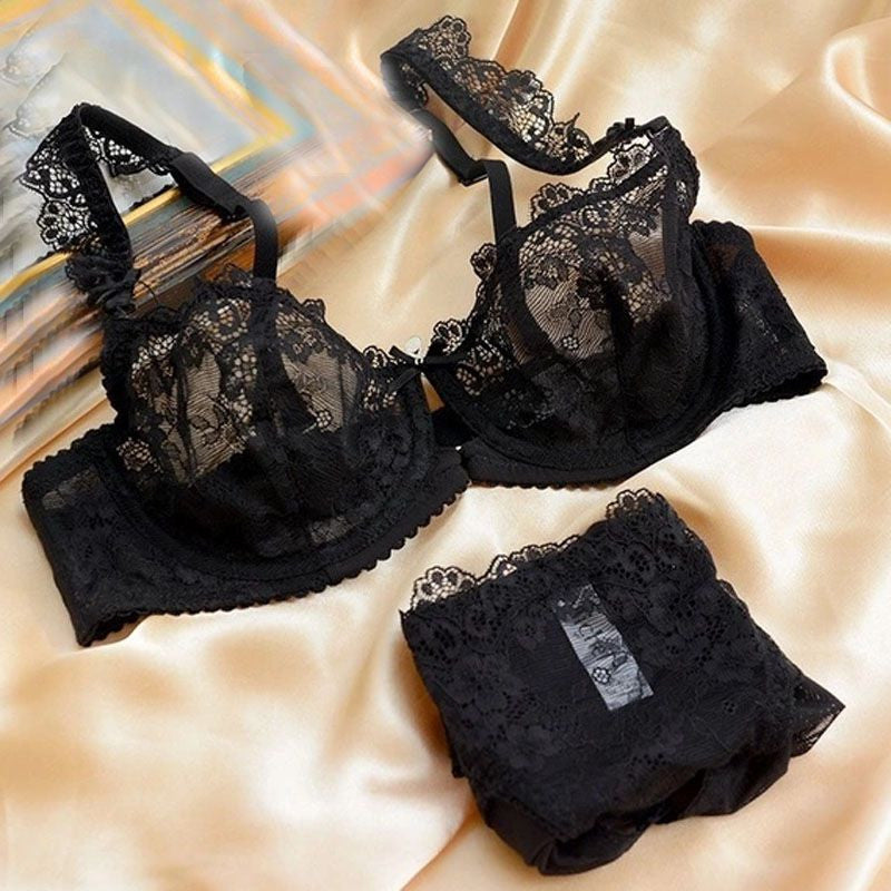 Underwear Women Bra and Panty Set Black Mesh Ultra-thin Plus Size Sexy Lingerie Transparent Lace Bra Set Push Up Brassiere TIML66
